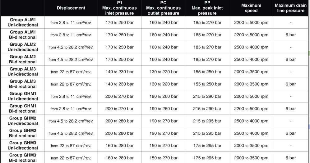 第一級(jí),低排量,高壓:4.5 cc/rev 至 8.3 cc/rev;P1 在 250 巴